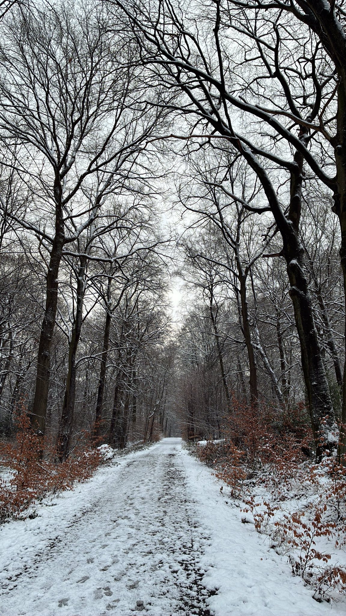 Ich beruhige meine Nerven mit einem zweiten Waldspaziergang. Es ist schön zuzusehen, wie sich langsam die Dunkelheit zwischen die kahlen Äste senkt und der Schnee noch das letzte Licht des Tages verstärkt. Wer weiß, wie viel Schnee ich in meinem Leben noch zu sehen bekomme?